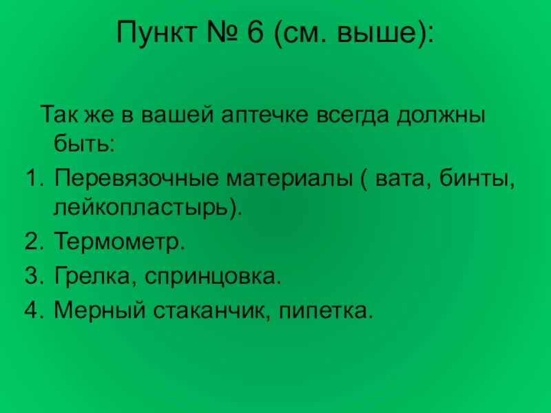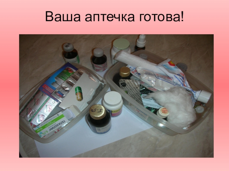 обморок, головная боль и т.д.). Для этого очень важно всегда иметь под рукой определенный набор лекарств и перевязочных средств. Неплохо также держать дома некоторый запас наиболее часто употребляемых препаратов.