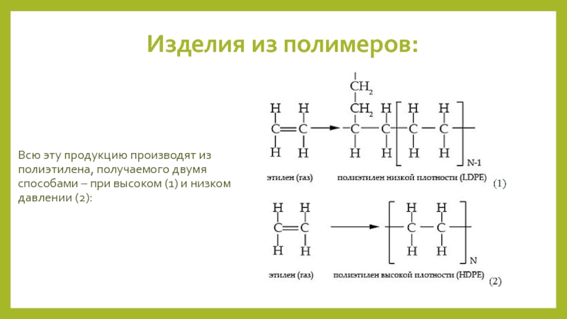 Всю эту продукцию производят из полиэтилена, получаемого двумя способами