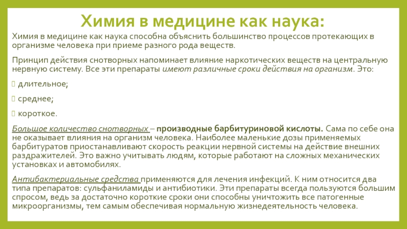 созидательную роль в медицине, так и разрушительную, ведь создаются не только лекарства, но и яды – токсические вещества, наносящие вред здоровью человека.