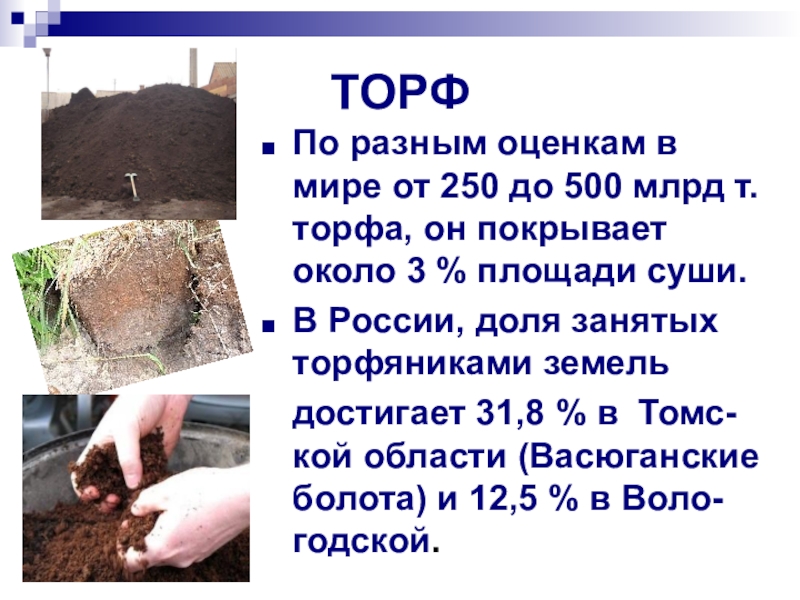По разным оценкам в мире от 250 до 500 млрд т. торфа,