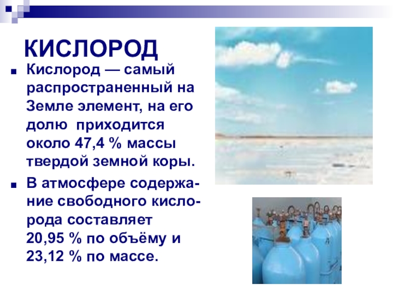 Кислород — самый распространенный на Земле элемент, на его долю приходится около