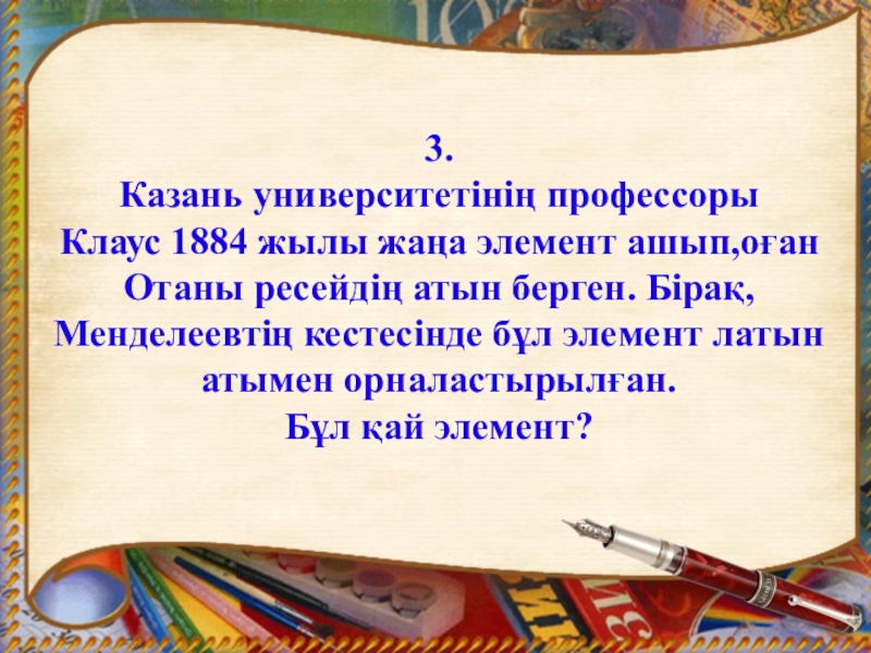 Клаус 1884 жылы жаңа элемент ашып,оған Отаны