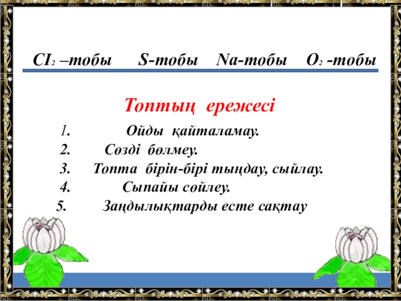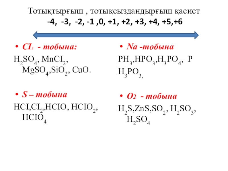 СІ2 –тобы S-тобы Na-тобы O2 -тобы