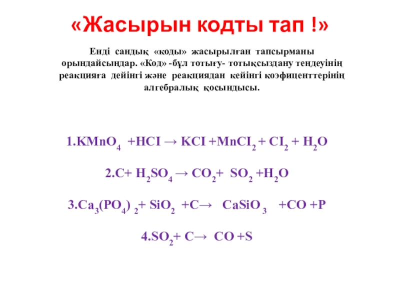 1.KMnO4 +HCI → KCI +MnCI2 + CI2 + H2O