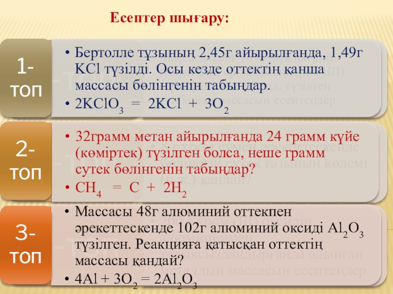 Сабақтың тақырыбы: Химиялық реакция теңдеулері бойынша есептеулер