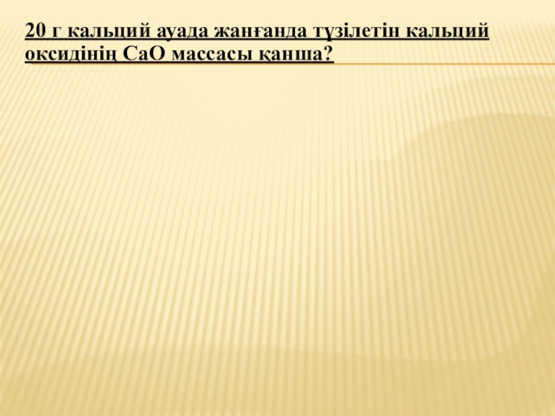 Слайд 620 г кальций ауада жанғанда түзілетін кальций оксидінің СаО массасы қанша?