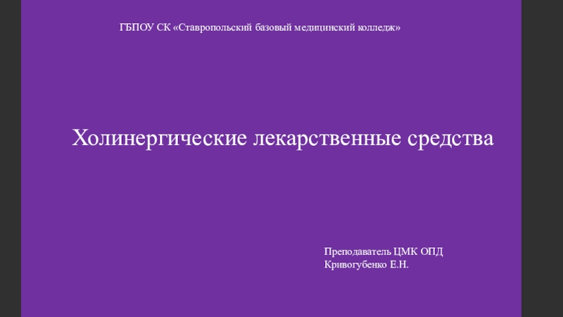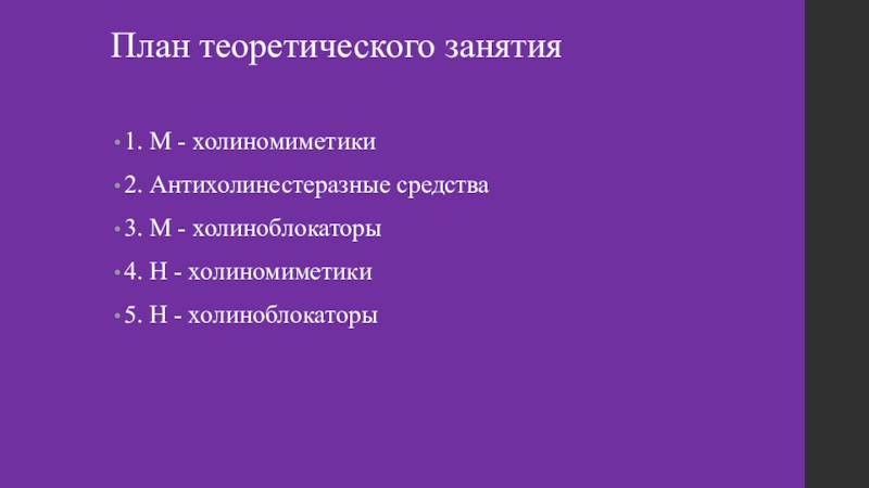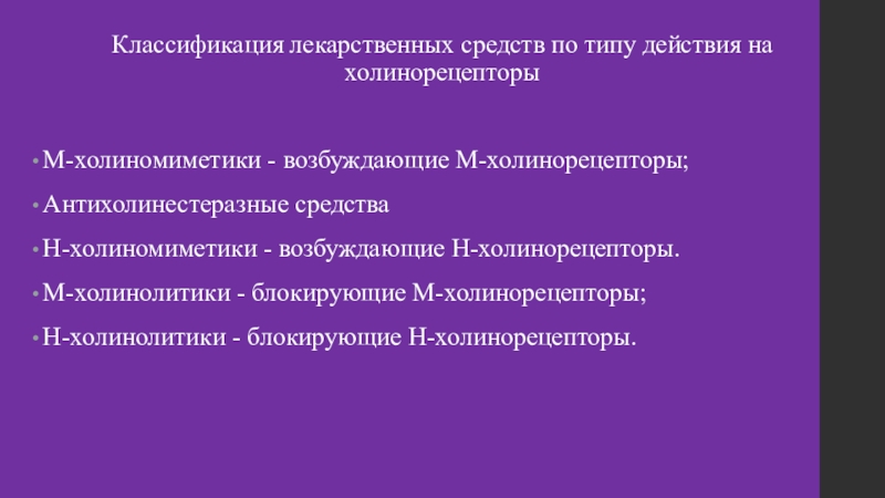 Классификация лекарственных средств по типу действия на холинорецепторы