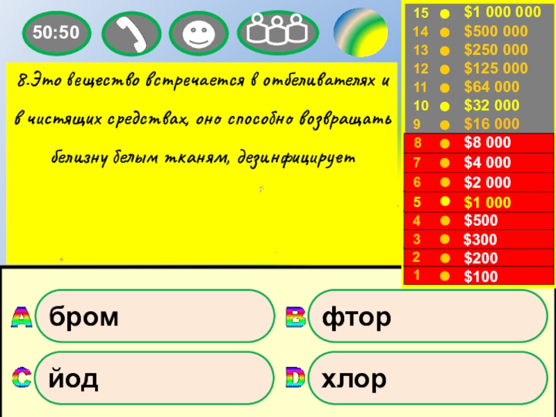 8.Это вещество встречается в отбеливателях и в чистящих средствах, оно способно возвращать белизну белым тканям, дезинфицирует
