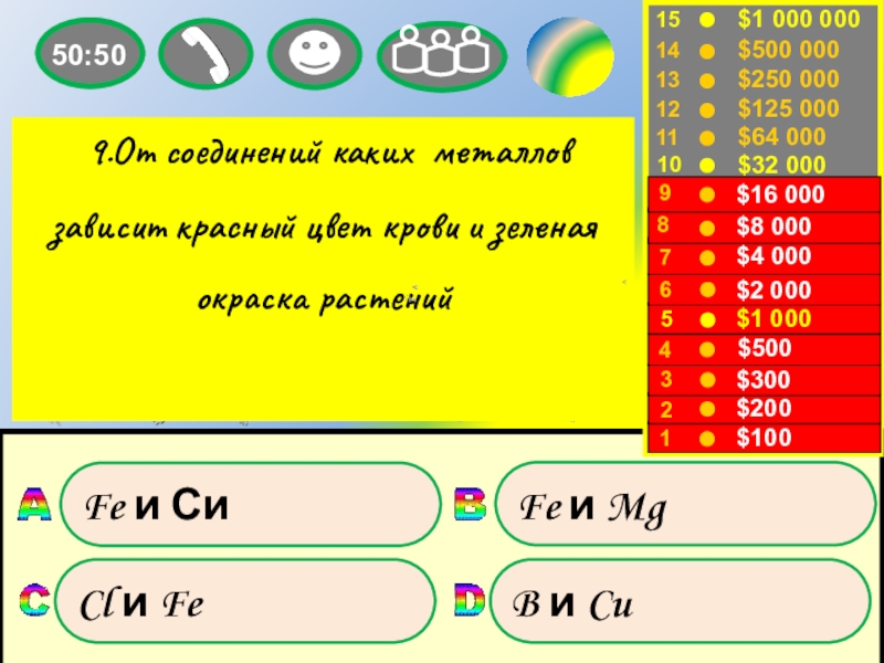9.От соединений каких металлов зависит красный цвет крови и зеленая окраска растений