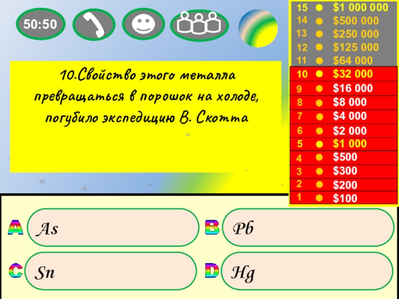 10.Свойство этого металла превращаться в порошок на холоде, погубило экспедицию В. Скотта