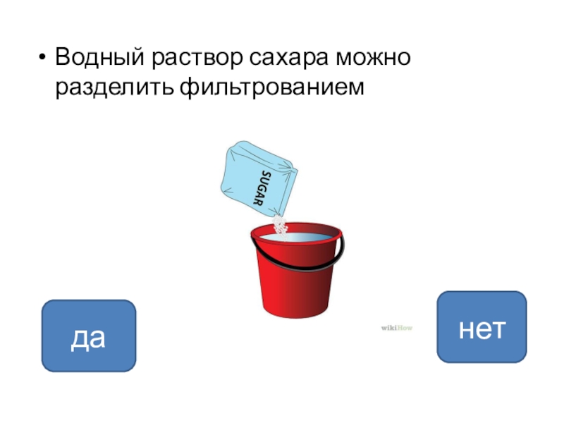 Слайд 21Водный раствор сахара можно разделить фильтрованием