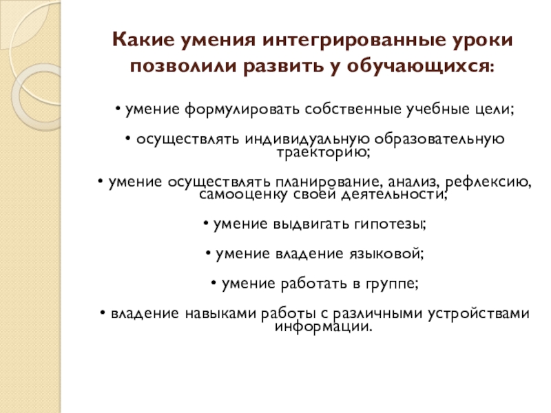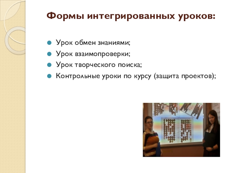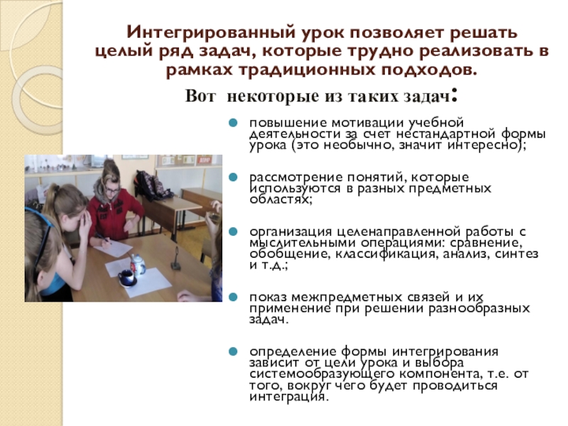 Среди наиболее эффективных форм работы в этом направлении являются интегрированные уроки, которые создают особые условия для его реализации, именно поэтому, сегодня им отводится достойное место в работе преподавателя.