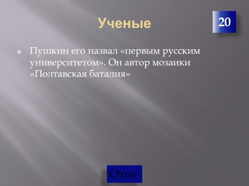 Это сайт презентаций, где можно хранить и обмениваться своими презентациями, докладами, проектами, шаблонами в формате PowerPoint с другими пользователями. Мы помогаем школьникам, студентам, учителям, преподавателям хранить и обмениваться учебными материалами.
