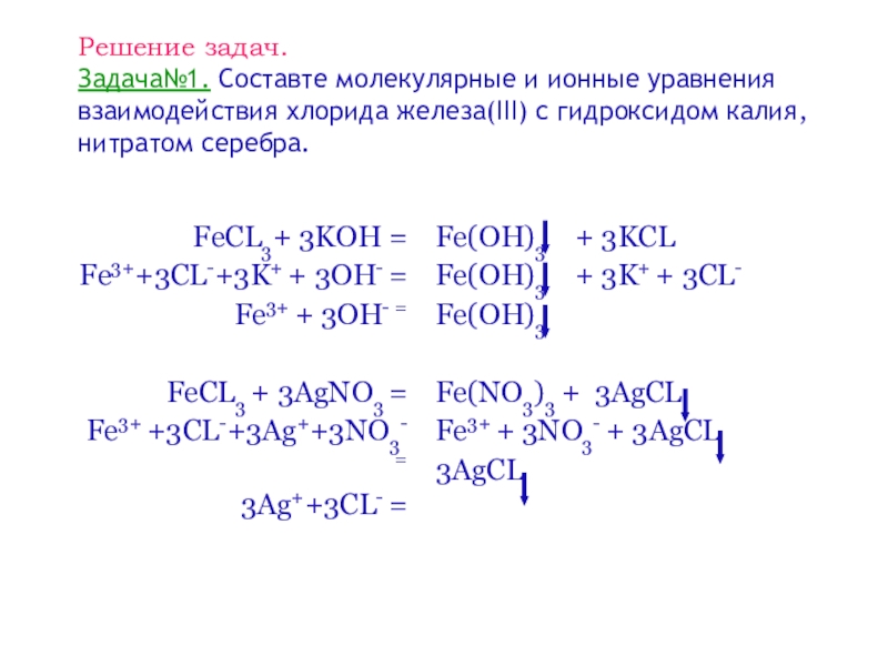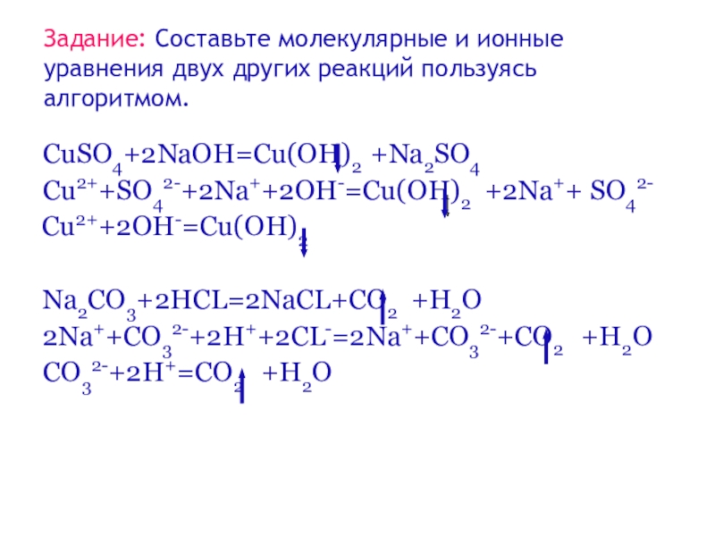 1. Запишите молекулярное уравнение. Расставьте коэффициенты.