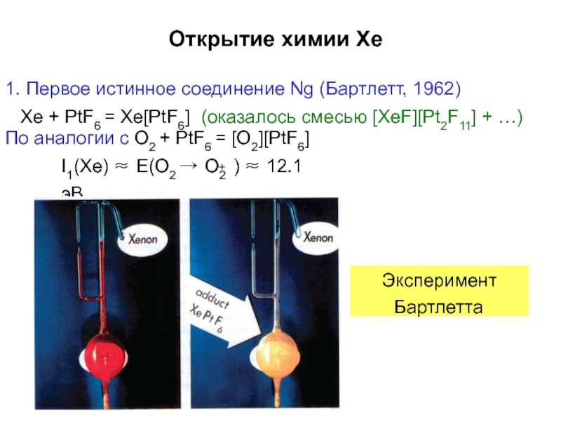 По аналогии с O2 + PtF6 = [O2][PtF6] I1(Xe) ≈ E(O2 → O2 ) ≈ 12.1 эВ