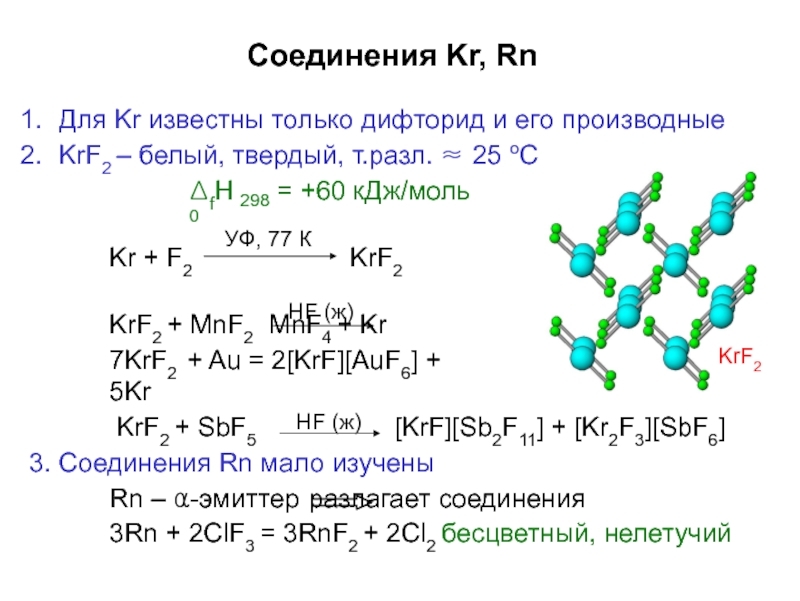 3Rn + 2ClF3 = 3RnF2 + 2Cl2 бесцветный, нелетучий