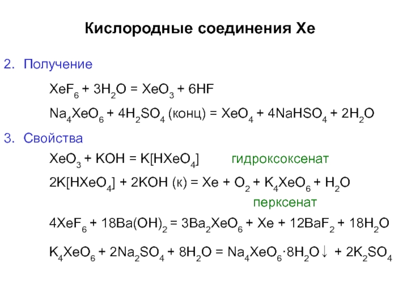 2K[HXeO4] + 2KOH (к) = Xe + O2 + K4XeO6 + H2O