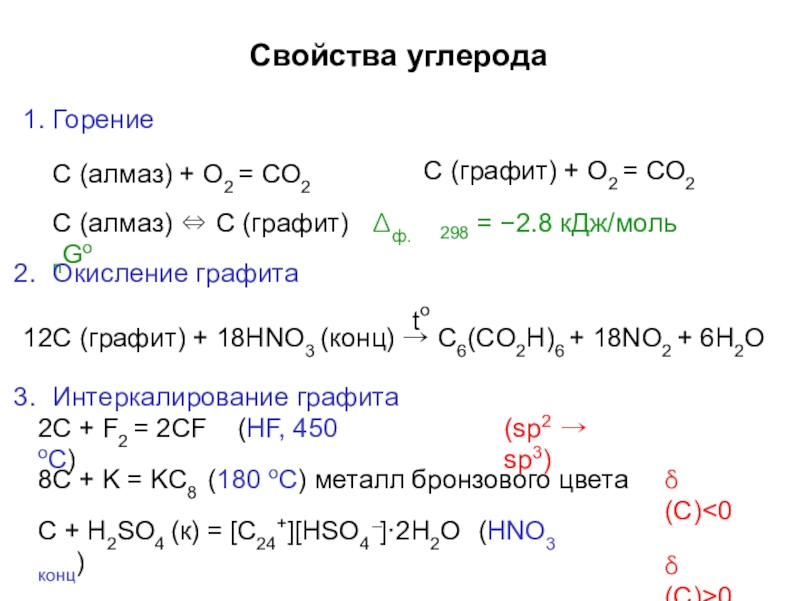 12С (графит) + 18HNO3 (конц) → C6(CO2H)6 + 18NO2 + 6H2O