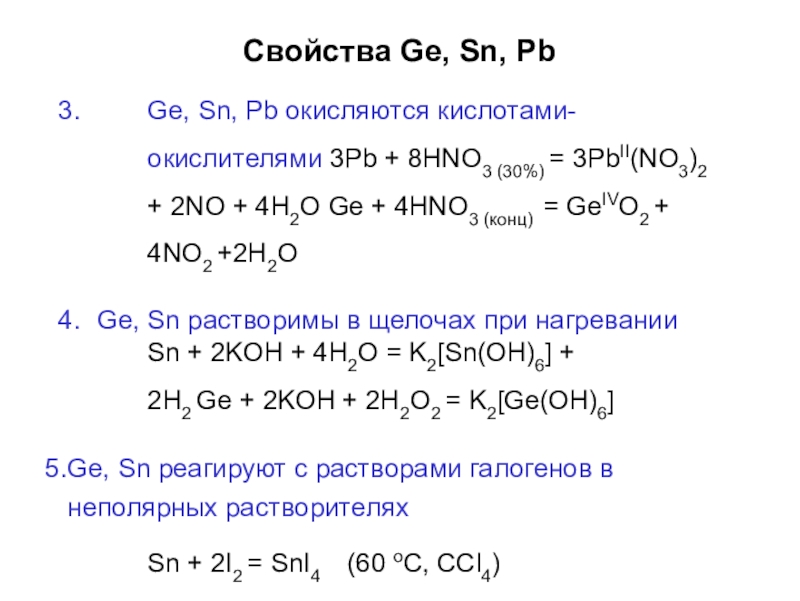 2PbO2 + 2H2SO4 = 2PbSO4↓ + O2 + 2H2O SnO2 + 2KOH + 2H2O = K2[Sn(OH)6]