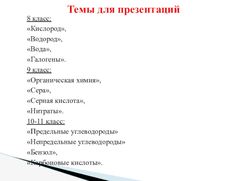 Темы для презентаций