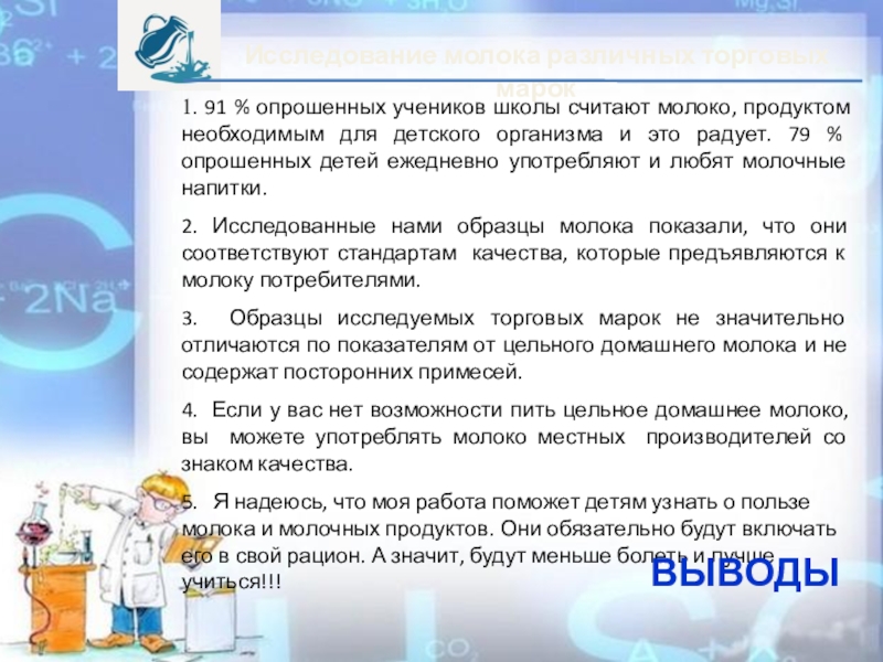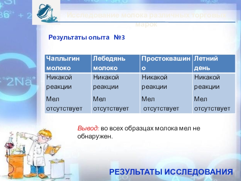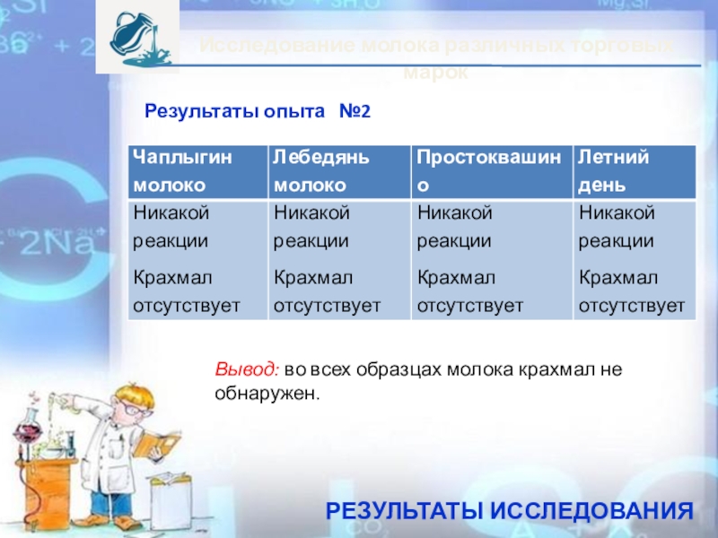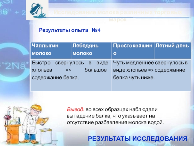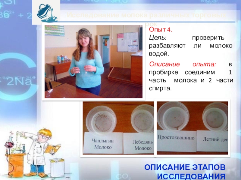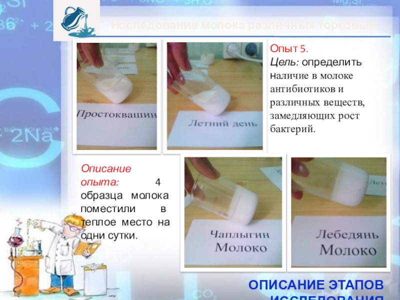 Описание опыта: 4 образца молока поместили в теплое место на одни сутки.