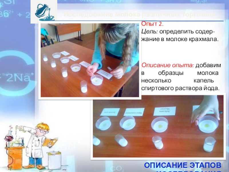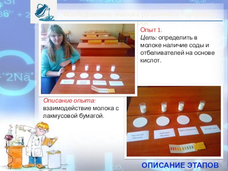 Описание опыта: взаимодействие молока с лакмусовой бумагой.
