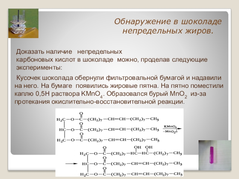 карбоновых кислот в шоколаде можно, проделав следующие эксперименты:
