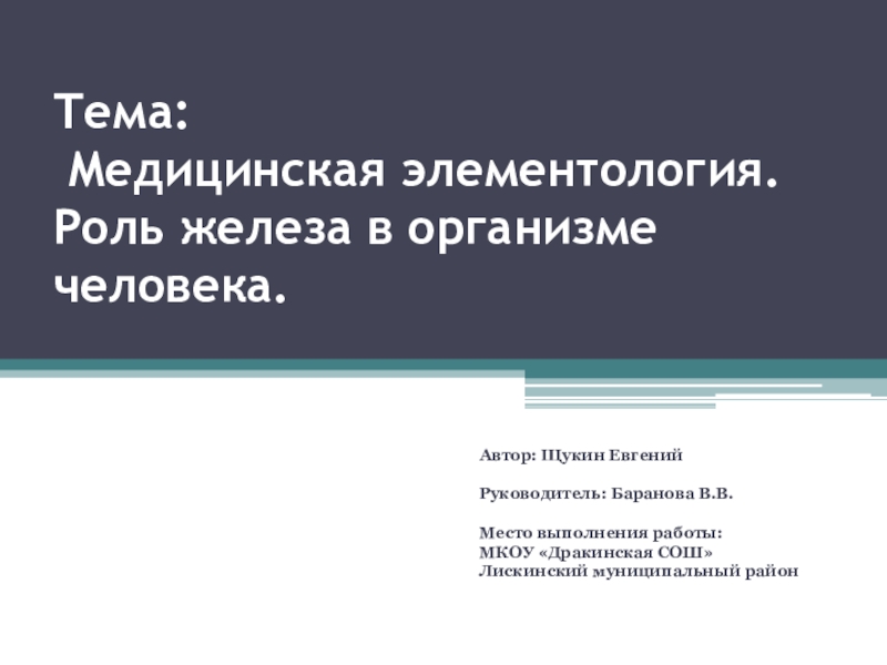 Медицинская элементология. Роль железа в организме человека.