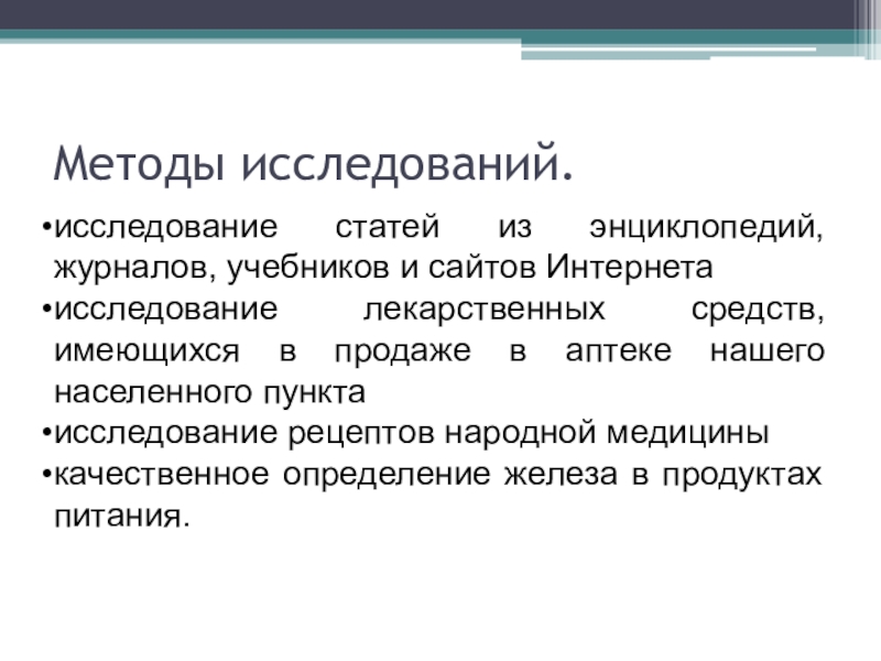 Слайд 6Методы исследований.
