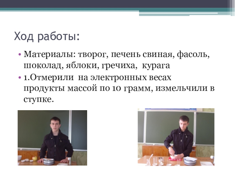 на электронных весах продукты массой по 10 грамм, измельчили в ступке.