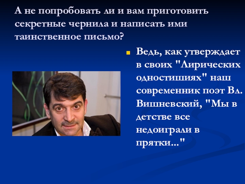 Ведь, как утверждает в своих "Лирических одностишиях" наш современник поэт Вл. Вишневский, "Мы в детстве все недоиграли в прятки..."
