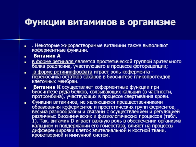 . Некоторые жирорастворимые витамины также выполняют коферментные функции.