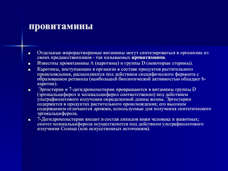 Отдельные жирорастворимые витамины могут синтезироваться в организме из своих предшественников -