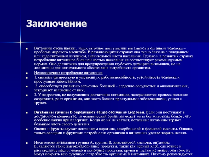 мирового масштаба. В развивающихся странах она тесно связана с голоданием или недостаточным питанием, значительной части населения. Однако и в развитых странах потребление витаминов большей частью населения не соответствует рекомендуемым нормам. Оно достаточно для предупреждения глубокого дефицита витаминов, но не достаточно для оптимального обеспечения потребности организма.