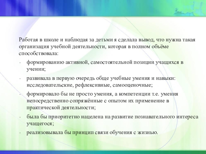 нужна такая организация учебной деятельности, которая в полном объёме способствовала: