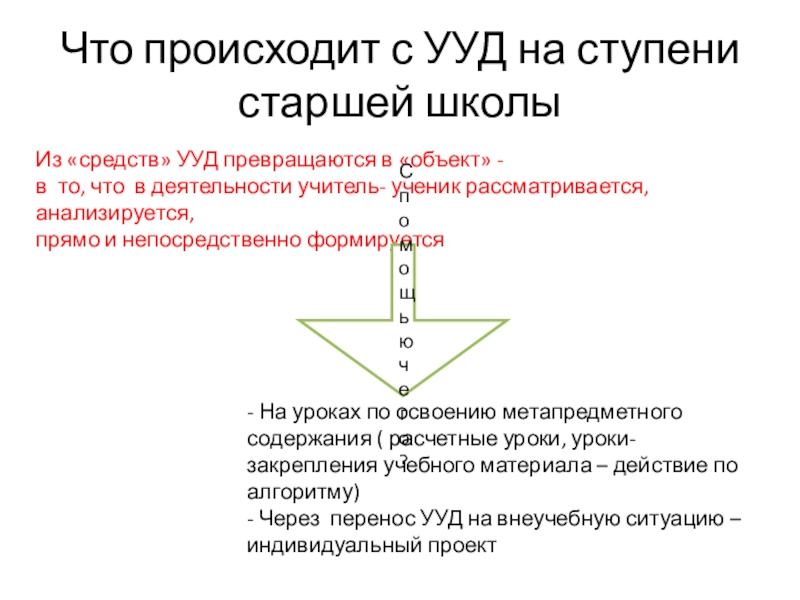 - Через перенос УУД на внеучебную ситуацию – индивидуальный проект
