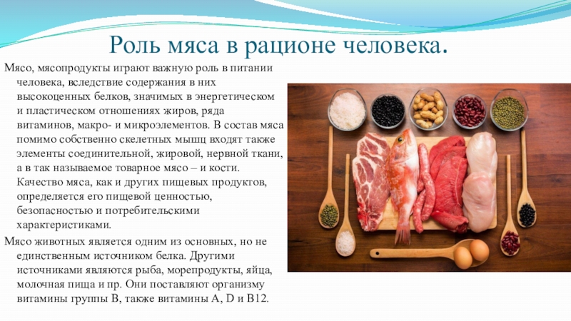 Слайд 13Роль мяса в рационе человека.