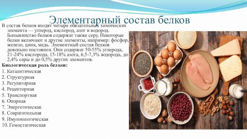 Слайд 9Элементарный состав белков