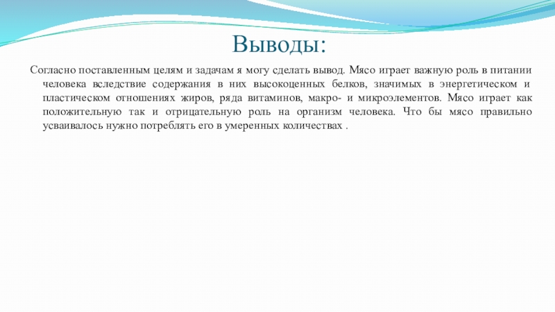 Согласно поставленным целям и задачам я могу сделать вывод. Мясо играет