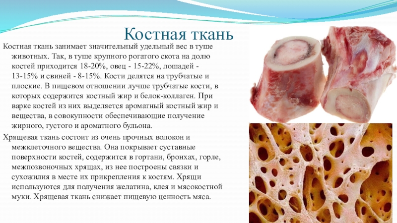 Костная ткань занимает значительный удельный вес в туше животных. Так, в