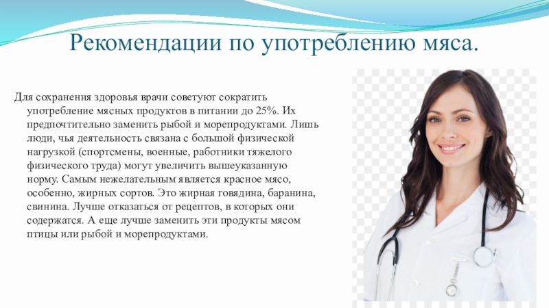 Слайд 12Рекомендации по употреблению мяса.