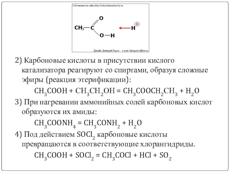 Наиболее важные химические свойства, характерные для большинства карбоновых кислот: