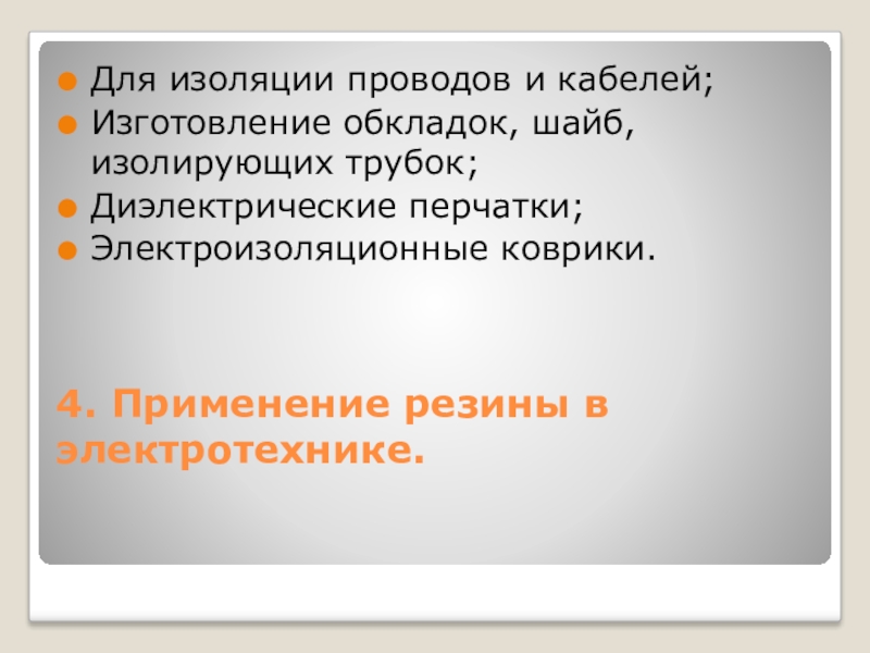 4. Применение резины в электротехнике.