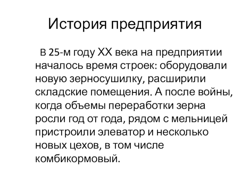 оборудовали новую зерносушилку, расширили складские помещения. А после войны, когда объемы переработки зерна росли год от года, рядом с мельницей пристроили элеватор и несколько новых цехов, в том числе комбикормовый.