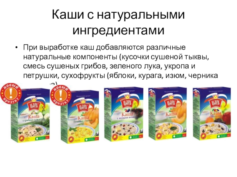 При выработке каш добавляются различные натуральные компоненты (кусочки