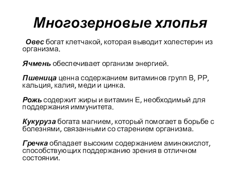 Слайд 11 Овес богат клетчакой, которая выводит холестерин из организма.