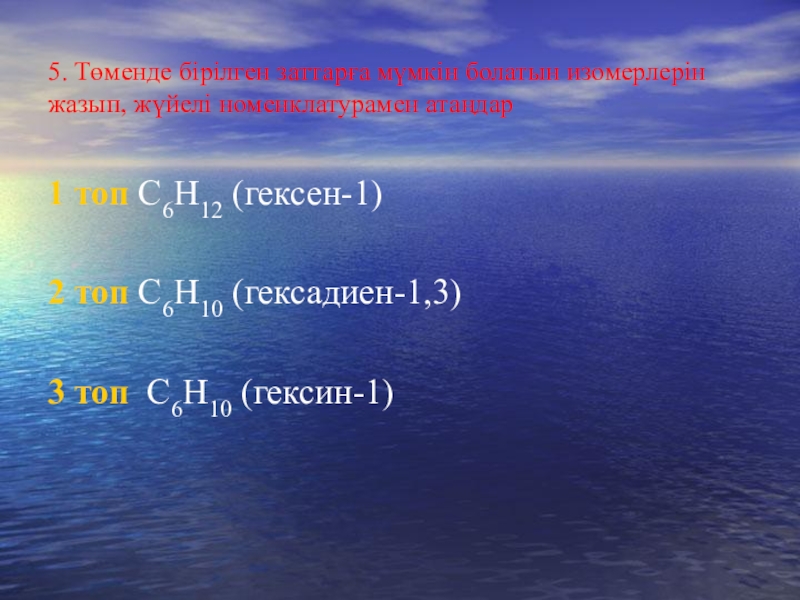 Слайд 115. Төменде бірілген заттарға мүмкін болатын изомерлерін жазып, жүйелі номенклатурамен атаңдар