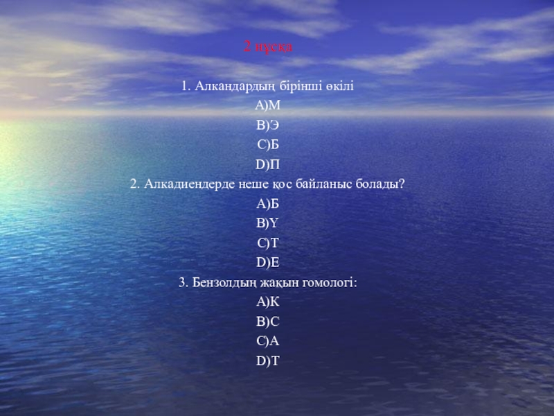 Слайд 1810. Тест тапсырмалары. Мұнда жауаптар бірінші әріптерімен ғана беріледі