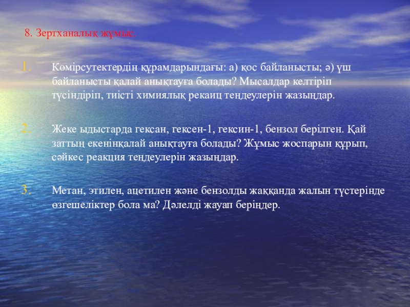 Слайд 126. Берілген заттардың ішінде қайсылары бір-бірімен әрекеттесетінін тауып, реакция теңдеулерін жазып,