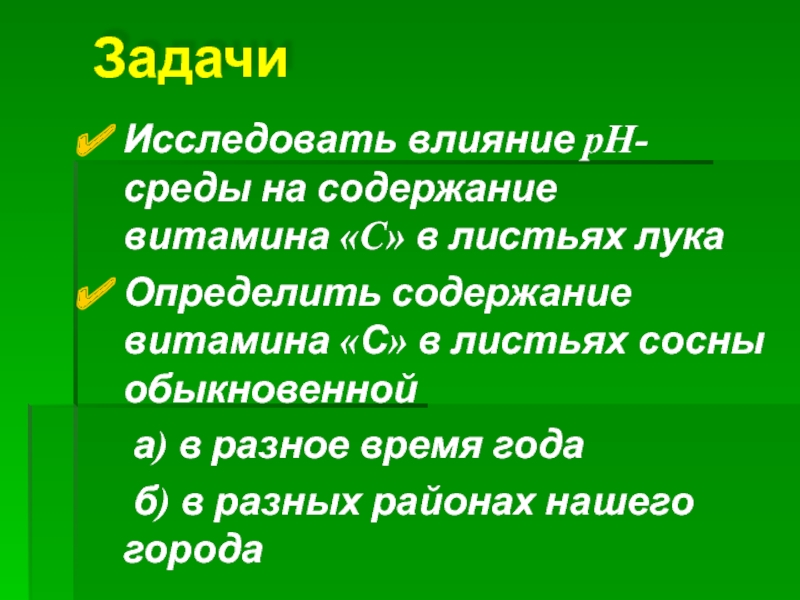 определение витамина «С» в зеленых листьях растений и изменение его содержания под влиянием различных факторов